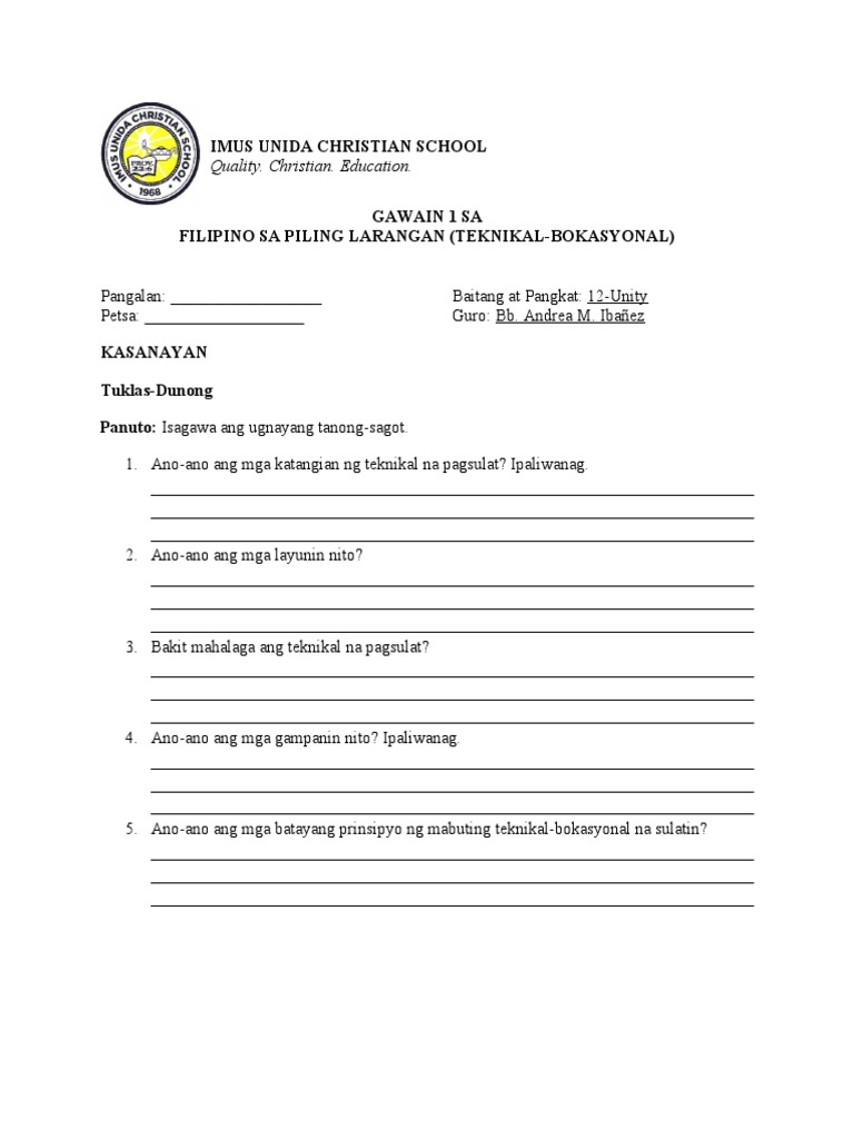 Gawain 1 Sa Filipino Sa Piling Larang Tech Voc