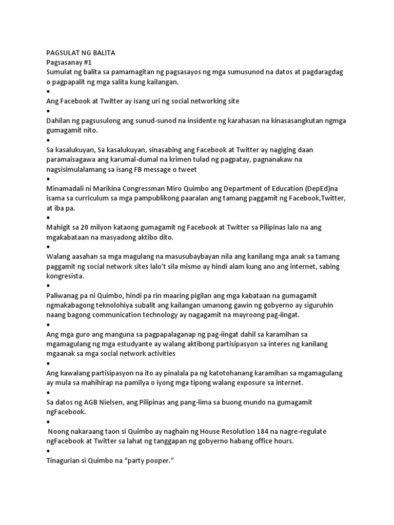 Tutukuyin ng mga mag-aaral ang. Datos sa unahan ng talata g. Displaying top 8 worksheets found for - Pagsulat Ng Balita.