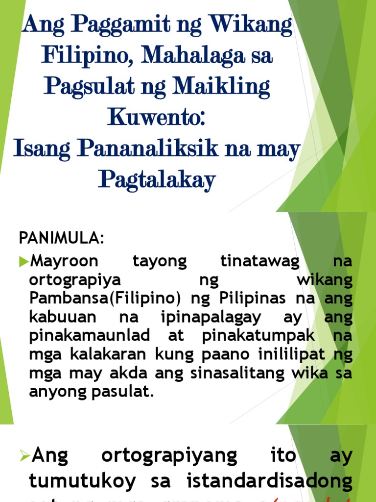 Kahalagahan Ng Wikang Filipino Sa Pagsulat Ng Maikling Kwento