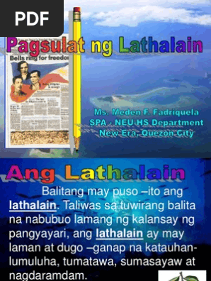 Ang Lathalain ay isang sulating tumatalakay ng mas malalim mas malawak sa malikhaing paraan sa isang balita panqyayari bagay o kaganapan. Some of the worksheets for this concept are Balangkas sa talata Balangkas sa talata Balangkas sa talata Balangkas sa talata Balangkas sa talata Balangkas sa talata Talata gamit ang pang uri Talata gamit ang pang uri. Ito ay nagdaragdag at nagpapatingkad ng kulay at buhay sa pahayagan.