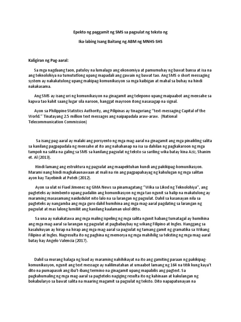 Epekto Ng Paggamit Ng Sms Sa Pagsulat Ng Teksto Ng
