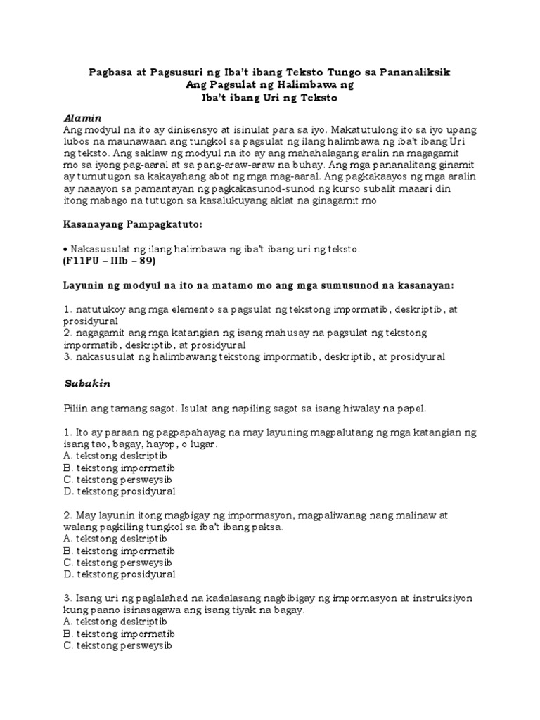 Modyul4 Pagsulat Ng Halimbawa Ng Teksto Docx