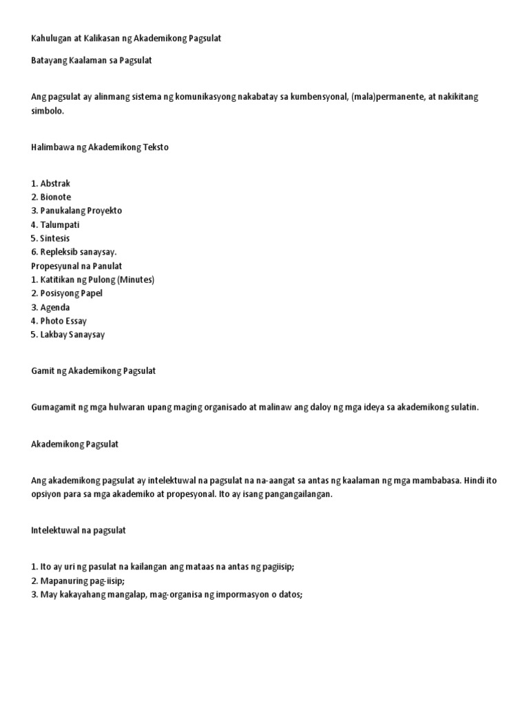 Akademikong Pagsulatito Ay Isang Pagsulat Na Naglalayong Linangin Ang