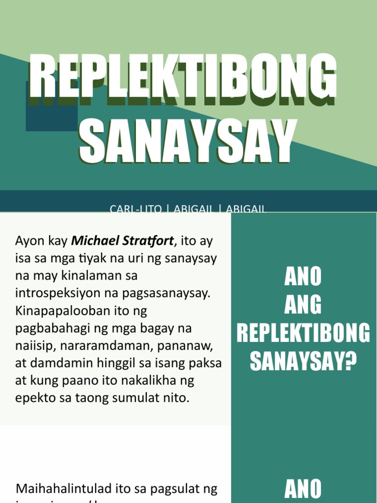 Mga hakbang sa pagsulat ng replektibong sanaysay - Infogram. Ortiz Guro sa Filipino Elizabeth Seton School Awtor. Isa itong masining na pagsulat na may kaugnayan sa pansariling pananaw at damdamin sa isang partikular na pangyayari.